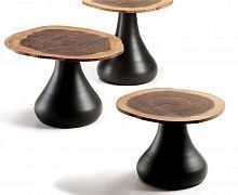Столик с базой из алюминия, окрашенного в гофрированный белый (OP71) или графитовый (GFM69). Столешница из МДФ с шпоном из разреза ствола ореха. Размеры столешницы указаны приблизительно, каждый элемент является уникальным по форме и размеру.