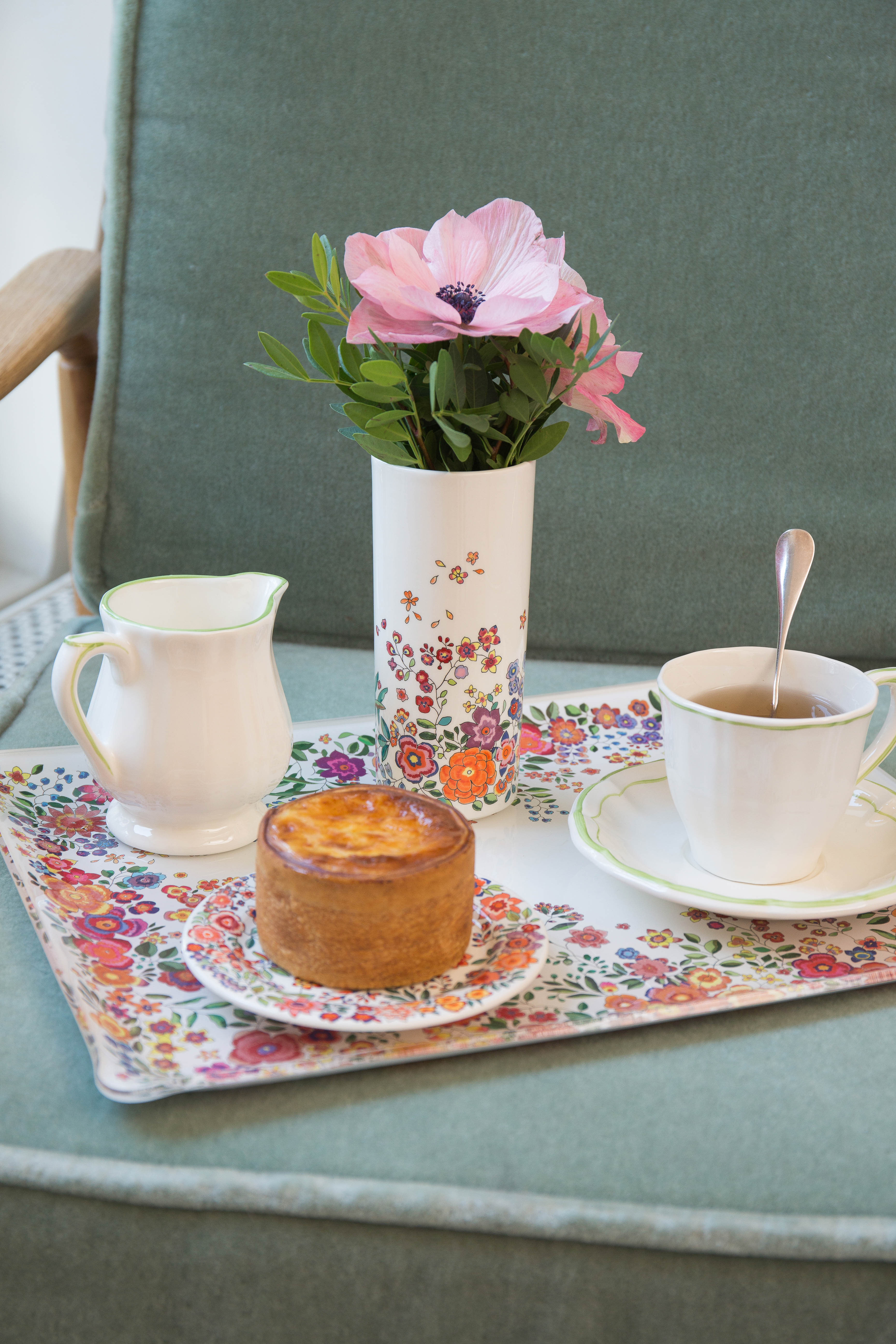 Этот цветочный узор подойдет на любой случай, для чая, кофе или обеда. Этот принт ярко- оранжевого, розового, голубого цвета излучает хорошее настроение и прекрасно подходит для сервировки стола в любом стиле.