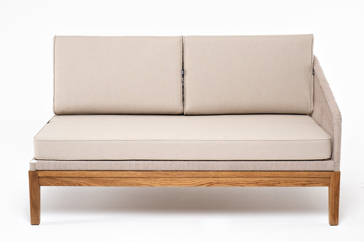 "Канны" левый модуль плетеный из роупа, основание дуб, роуп бежевый круглый, ткань бежевая 052